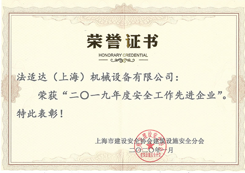 2020年1月20日,法適達(dá)榮獲“2019年度安全工作先進(jìn)企業(yè)”及“2019年度安全工先進(jìn)個(gè)人”。